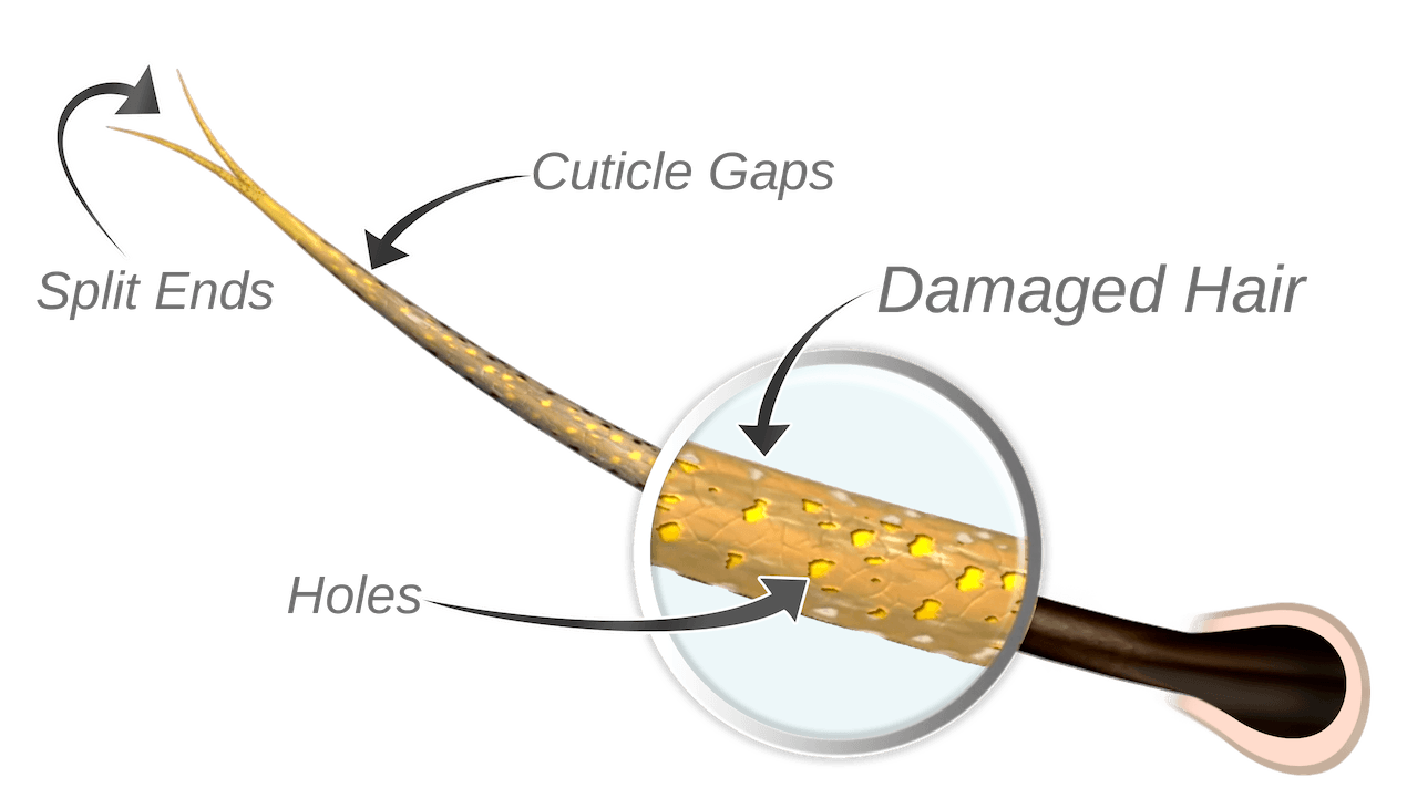 And the cracks and holes keep getting deeper and bigger until your hair splits and breaks.